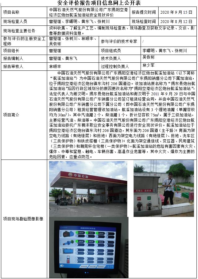 中国石油天然气股份有限公司广东揭阳空港经济区炮台航溪加油站安全现状评价