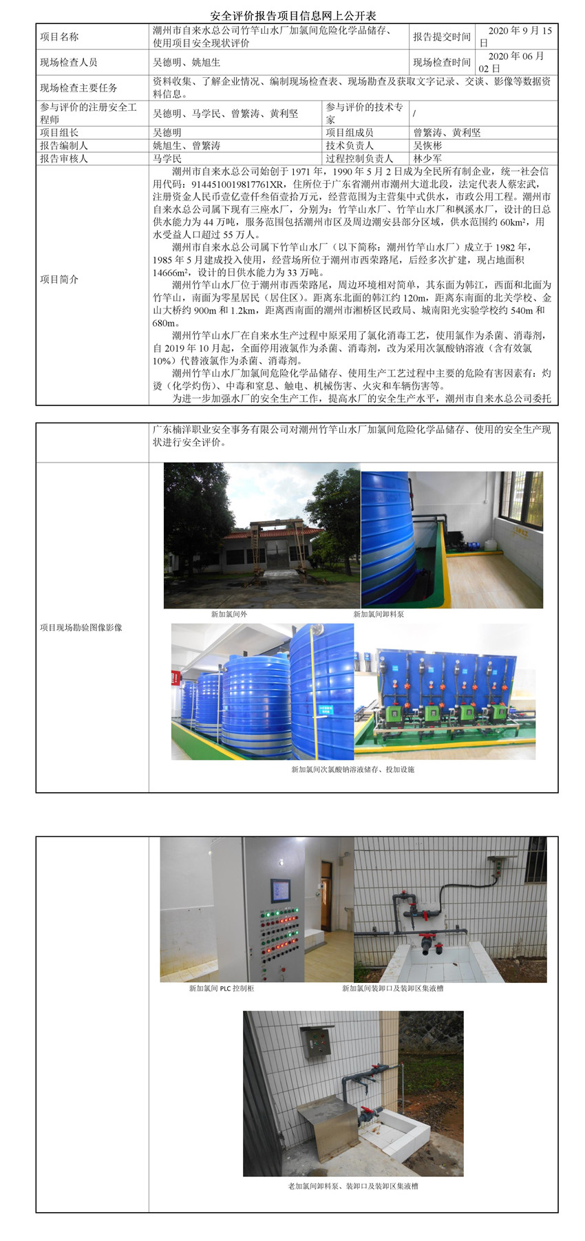潮州市自来水总公司竹竿山水厂加氯间危险化学品储存、使用项目安全现状评价
