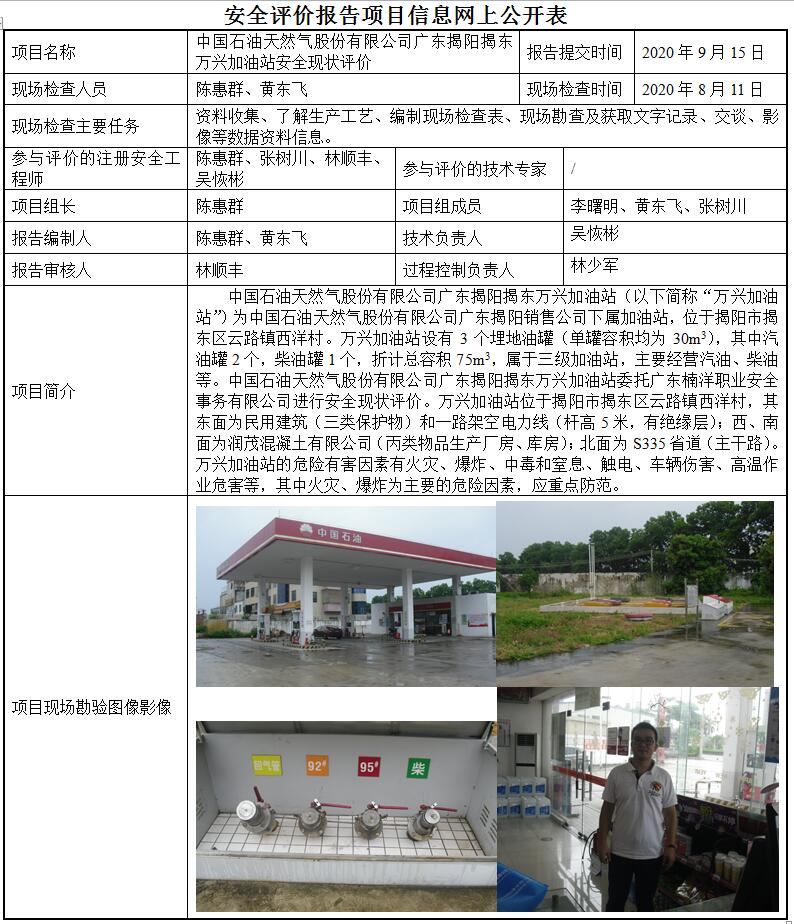 中国石油天然气股份有限公司广东揭阳揭东万兴加油站安全现状评价