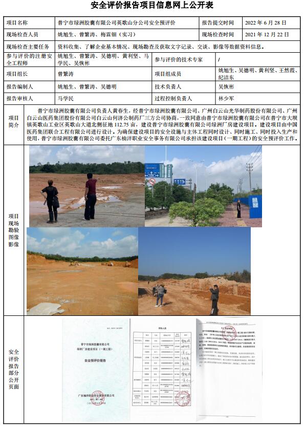 普宁市绿洲胶囊有限公司绿洲厂房建设项目(一期工程)安全预评价报告