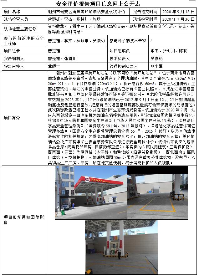 潮州市潮安区庵埠美环加油站安全现状评价