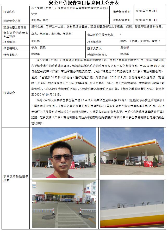 延长壳牌(广东)石油有限公司汕头中寨郡加油站安全现状评价