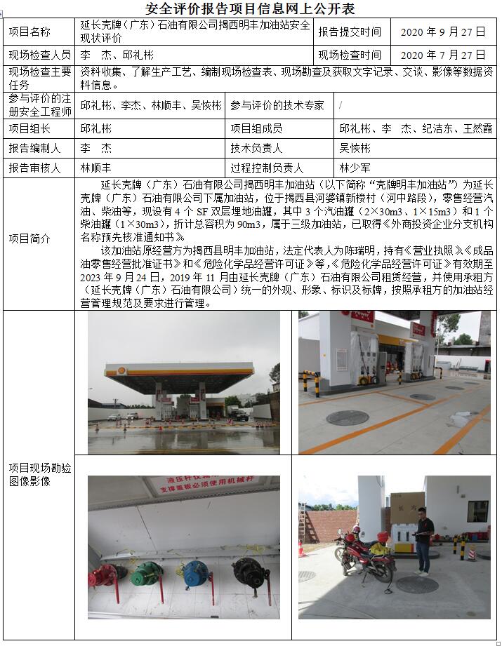 延长壳牌(广东)石油有限公司揭西明丰加油站安全现状评价