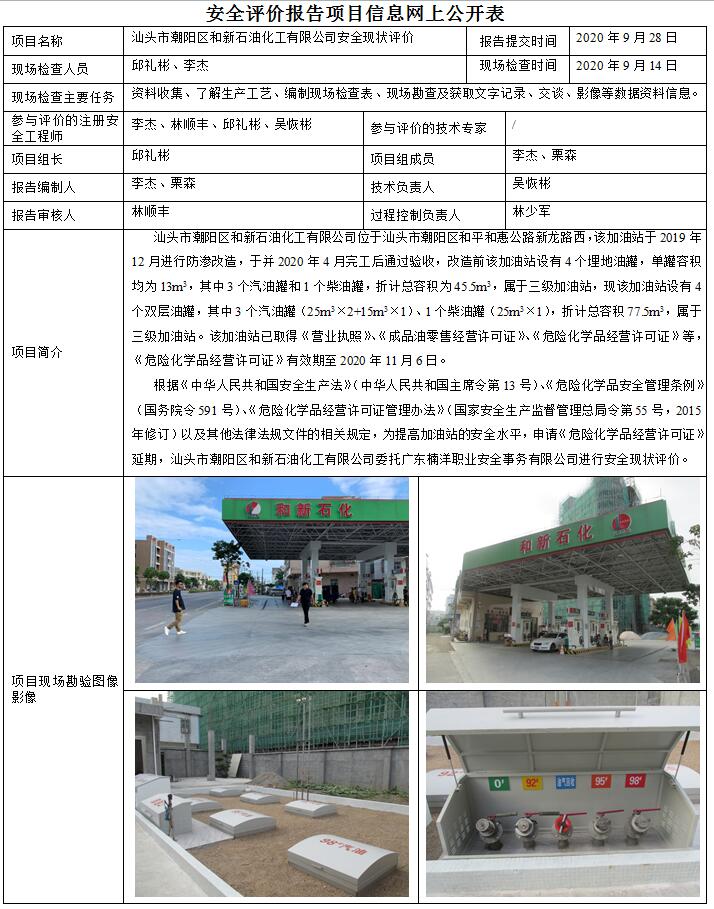 汕头市潮阳区和新石油化工有限公司(和新加油站)安全现状评价