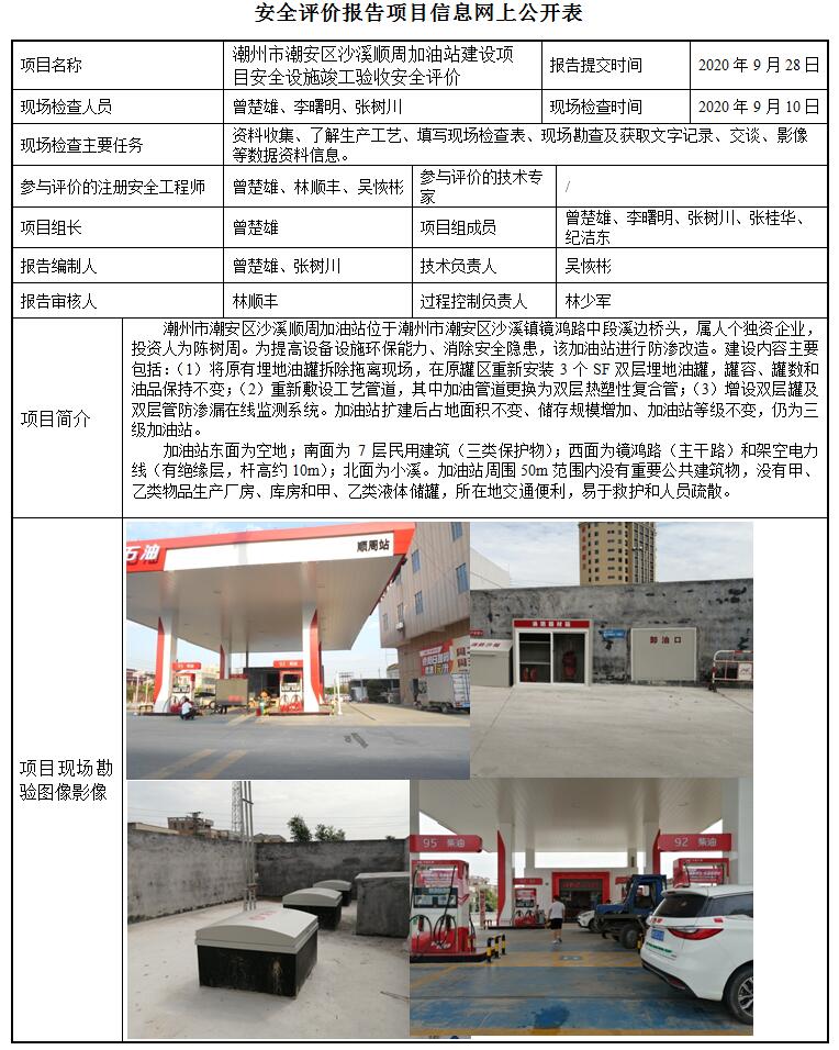 潮州市潮安区沙溪顺周加油站建设项目安全设施竣工验收安全评价