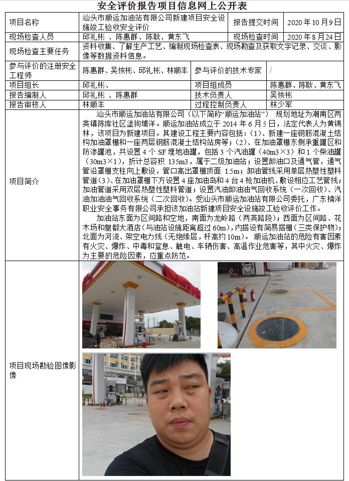 汕头市顺运加油站有限公司新建项目安全设施竣工验收安全评价