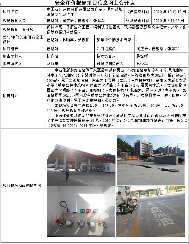 中国石化销售股份有限公司广东河源新港加油站安全现状评价