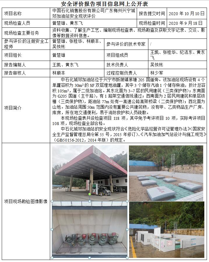 中国石化销售股份有限公司广东梅州兴宁城郊加油站安全现状评价