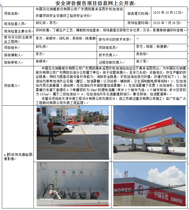 中国石化销售股份有限公司广东揭阳惠来溪西农机加油站改建项目安全设施竣工验收安全评价