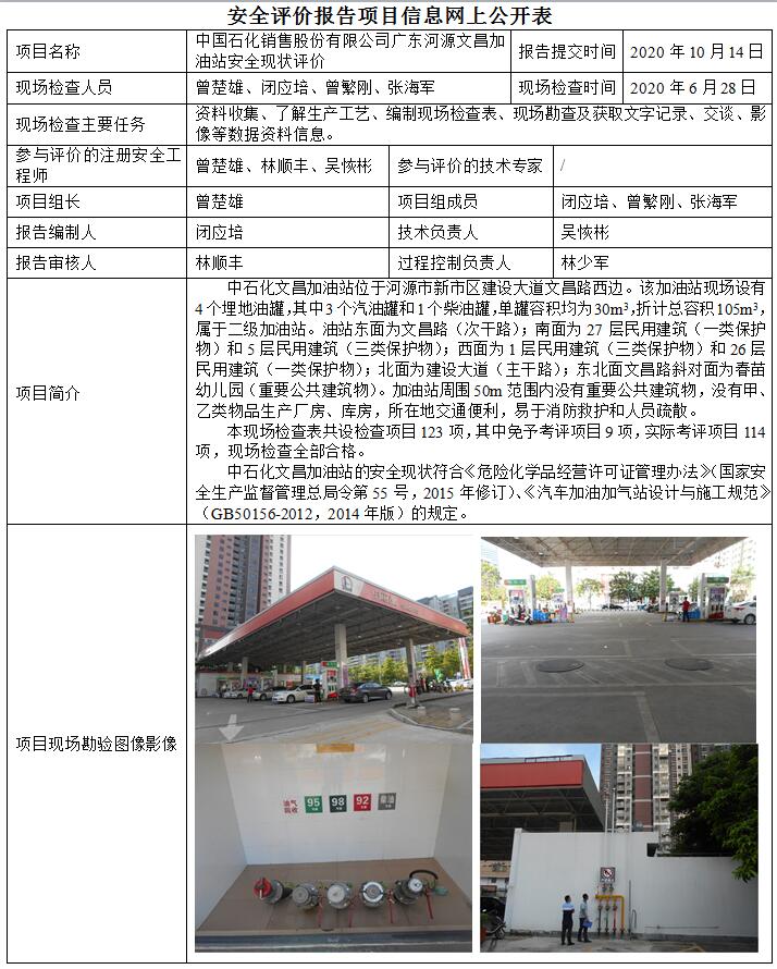 中国石化销售股份有限公司广东河源文昌加油站安全现状评价