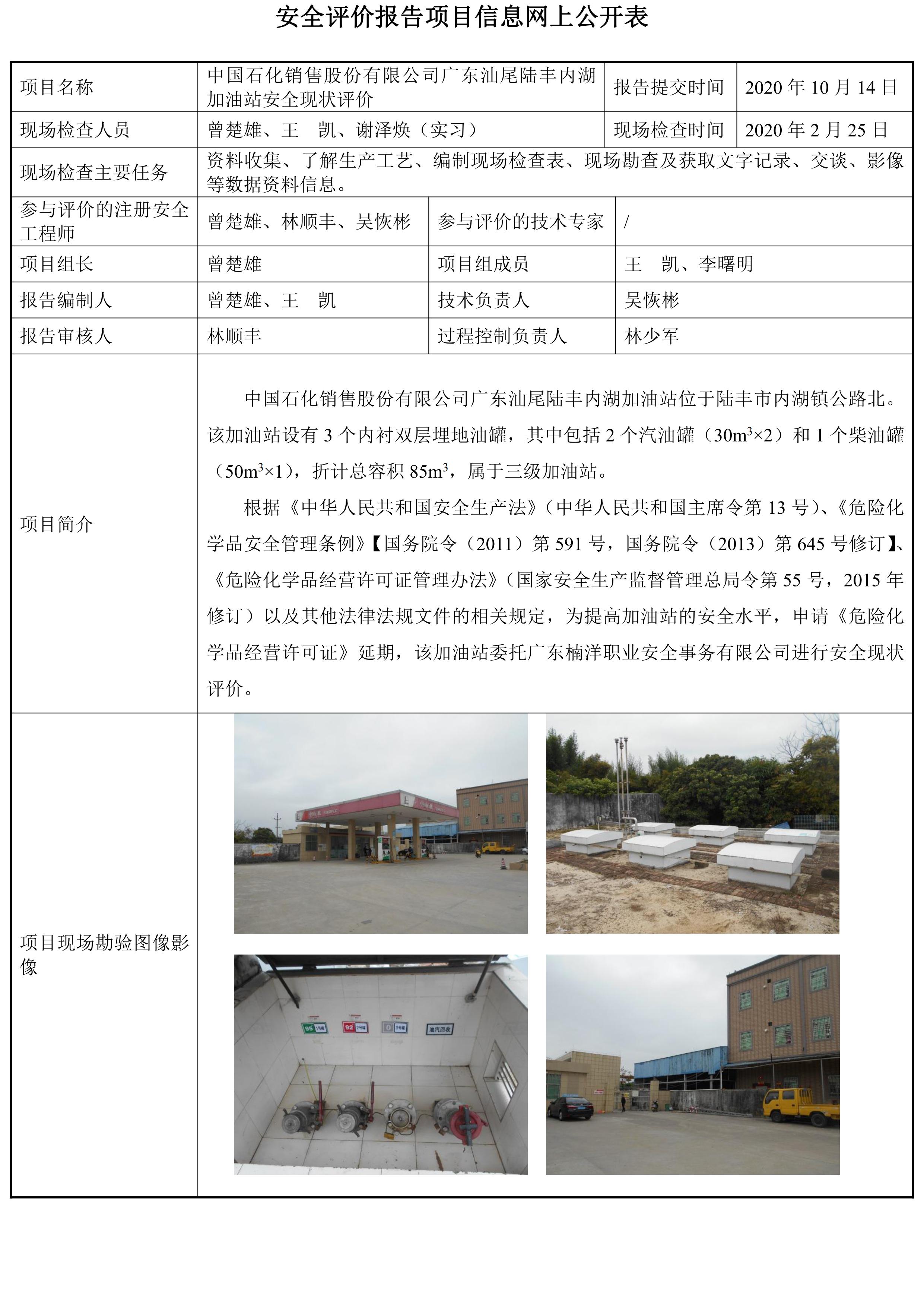 中国石化销售股份有限公司广东汕尾陆丰内湖加油站安全现状评价