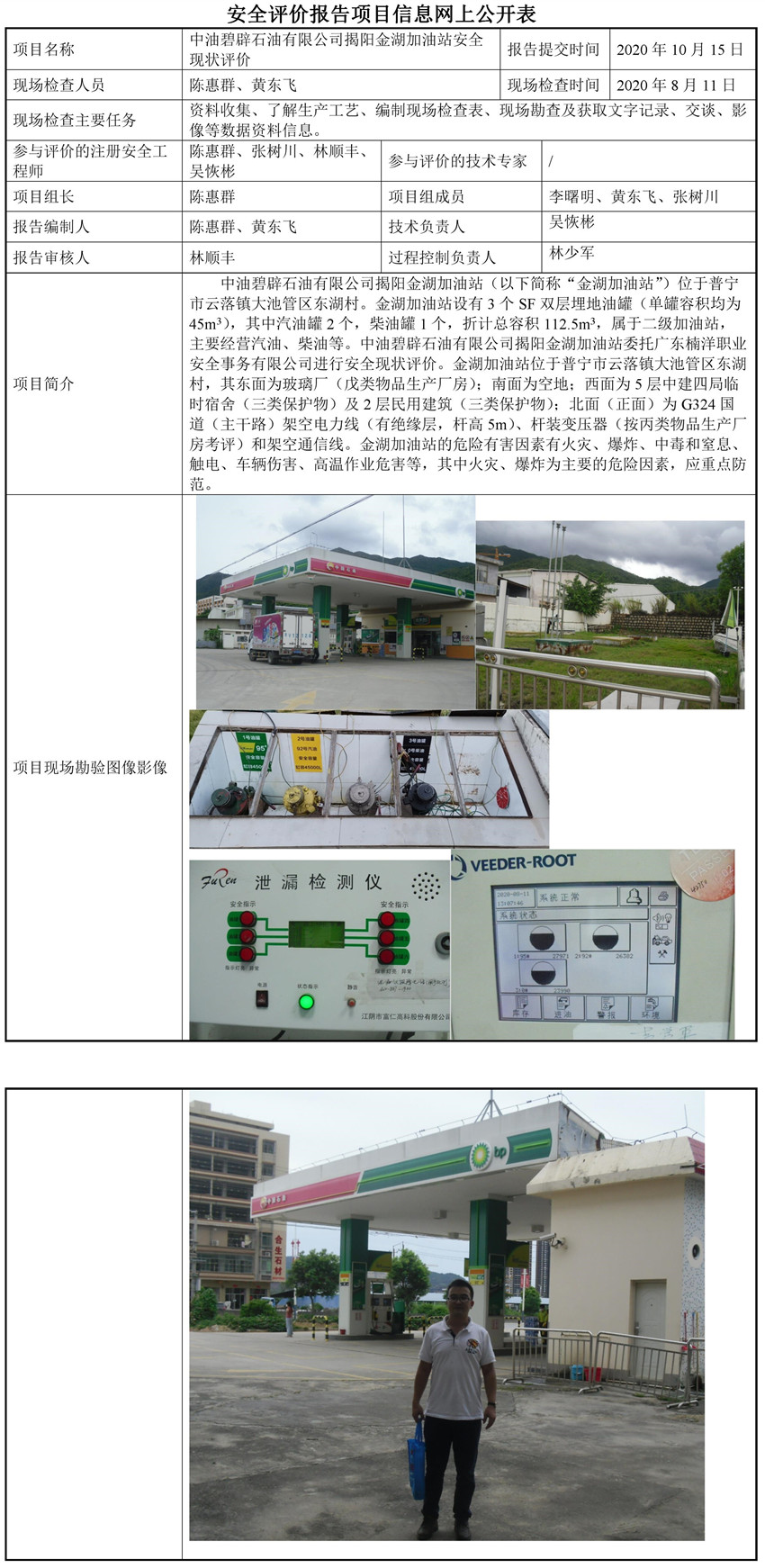 中油碧辟石油有限公司揭阳金湖加油站安全现状评价