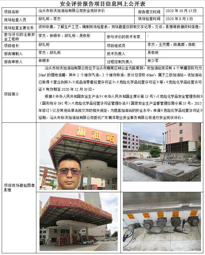 中油碧辟石油有限公司揭阳金湖加油站安全现状评价