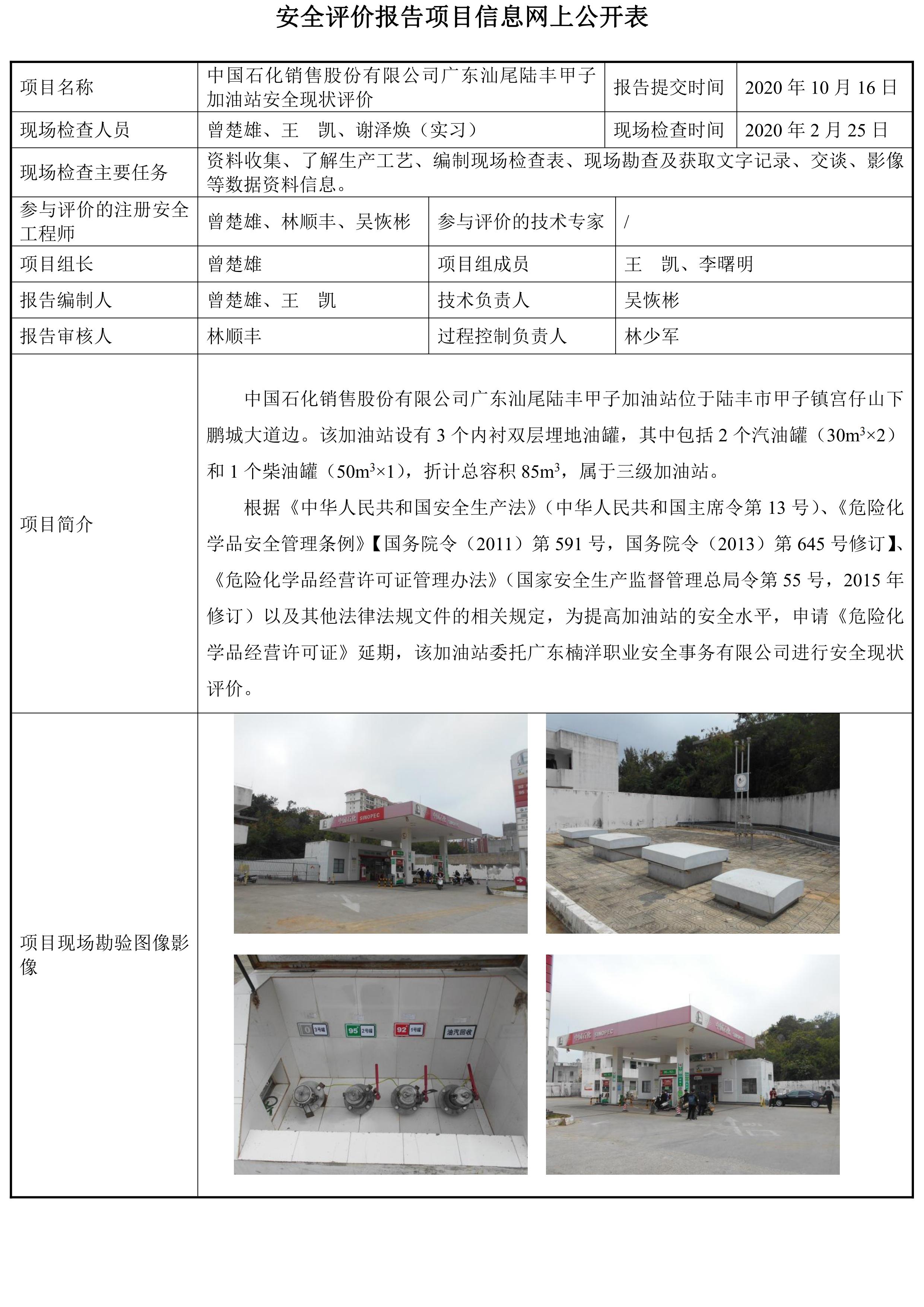 中国石化销售股份有限公司广东汕尾陆丰甲子加油站安全现状评价