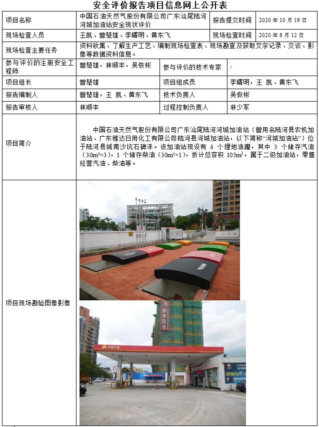 中国石油天然气股份有限公司广东汕尾陆河河城加油站安全现状评价