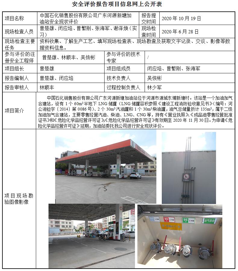 中国石化销售股份有限公司广东河源新塘加油站安全现状评价