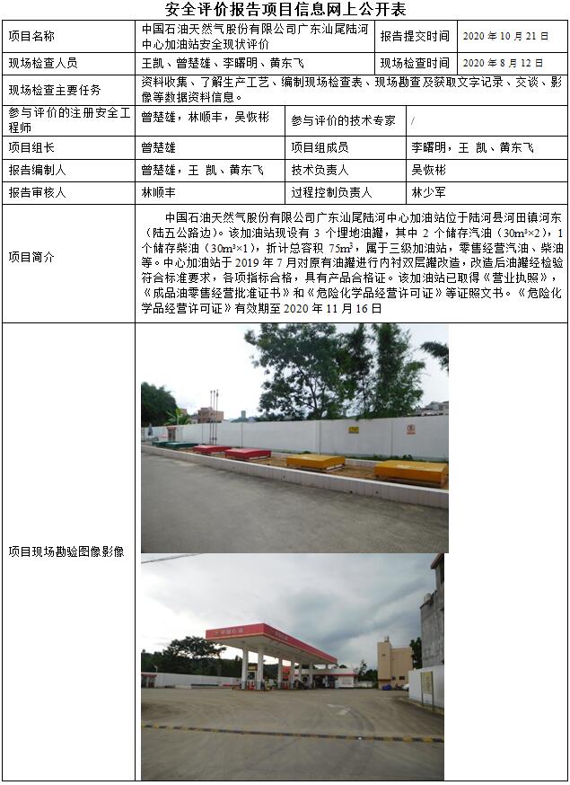 中国石油天然气股份有限公司广东汕尾陆河中心加油站安全现状评价
