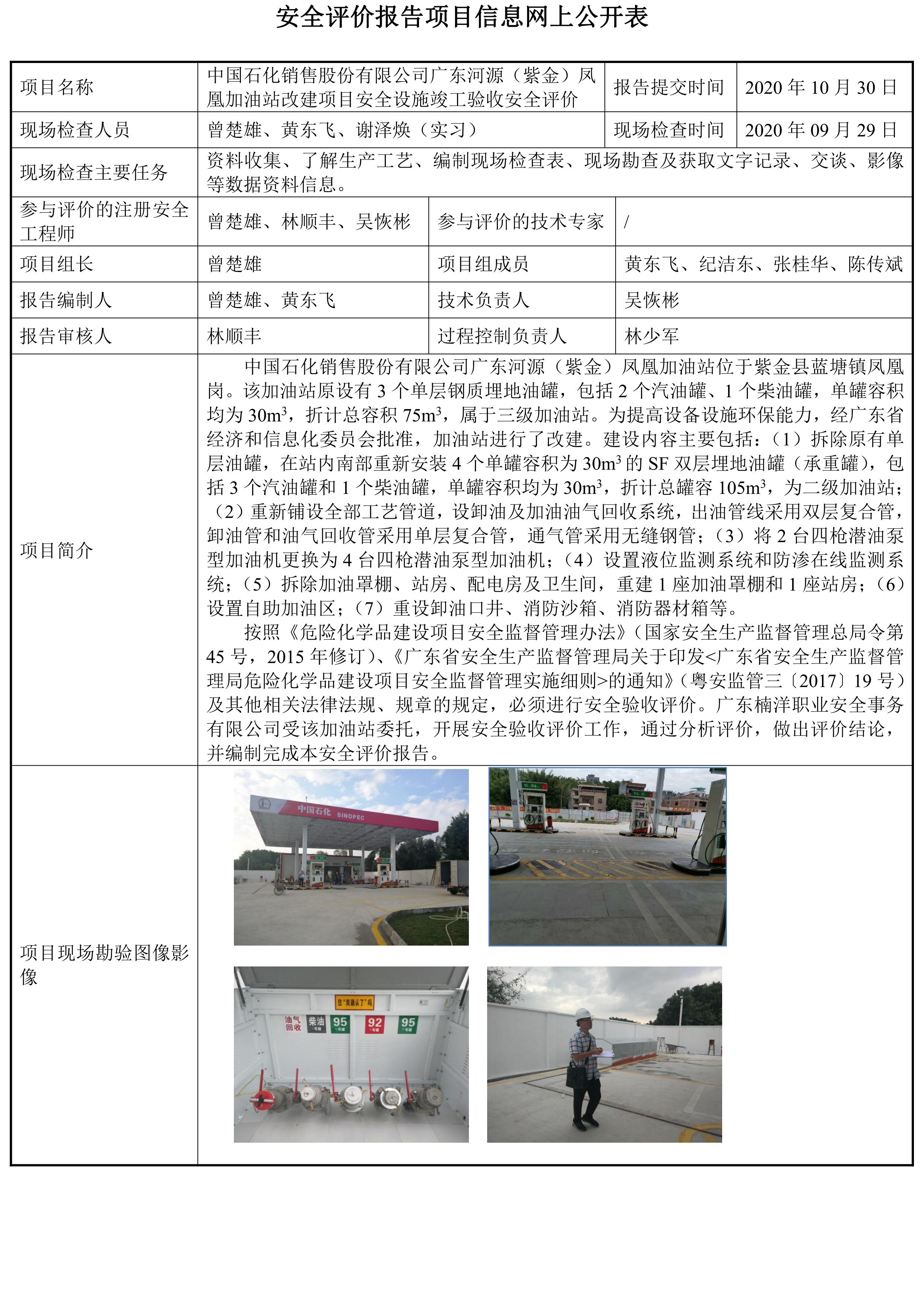 中国石化销售股份有限公司广东河源(紫金)凤凰加油站扩建项目安全设施竣工验收安全评价