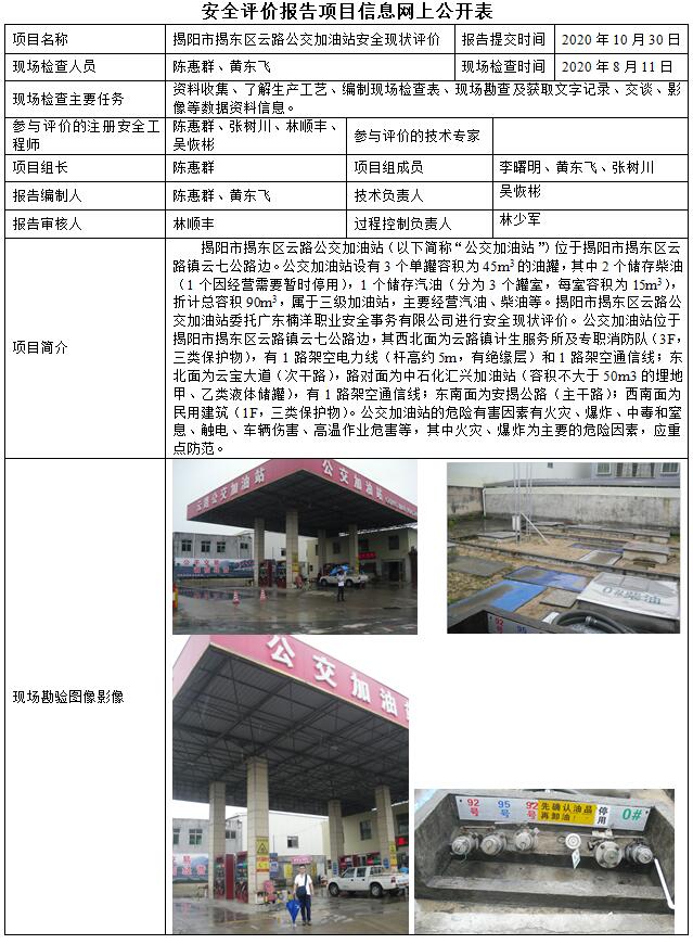 惠来冠豪实业有限公司惠来惠城加油站改建项目安全评价