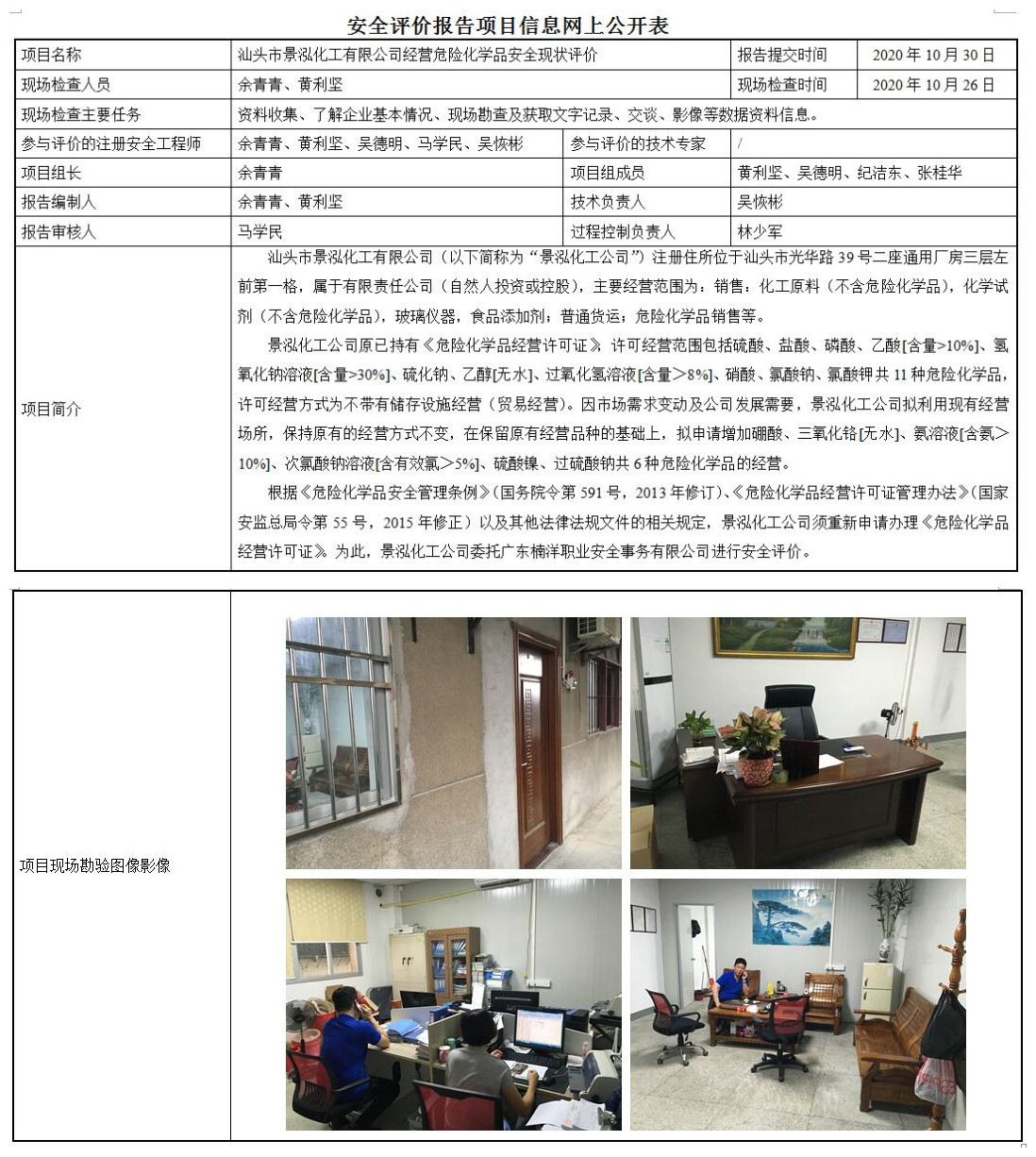 汕头市景泓化工有限公司经营危险化学品安全现状评价