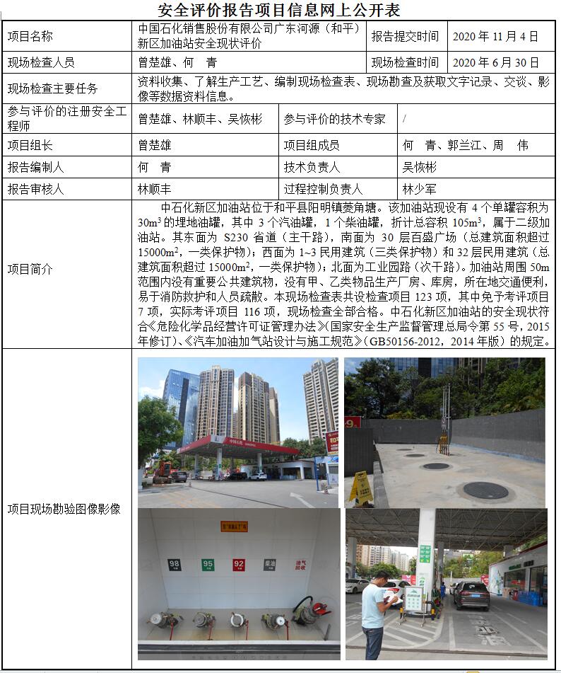 中国石化销售股份有限公司广东河源(和平)新区加油站安全现状评价