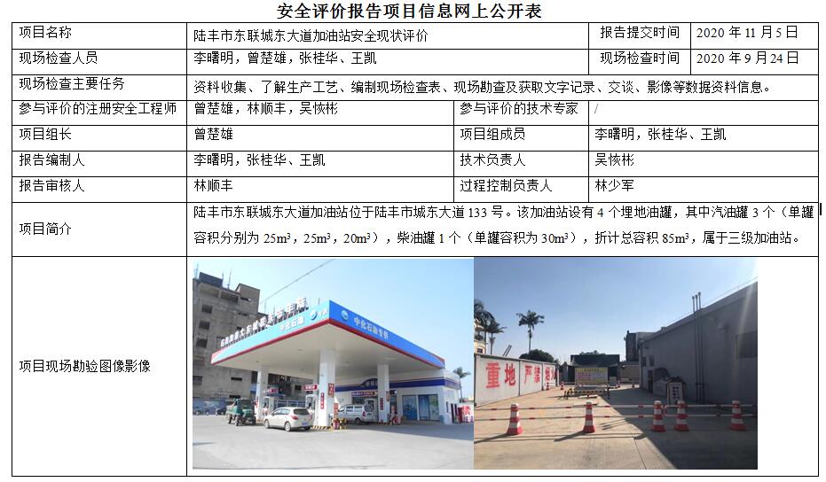 陆丰市东联城东大道加油站安全现状评价