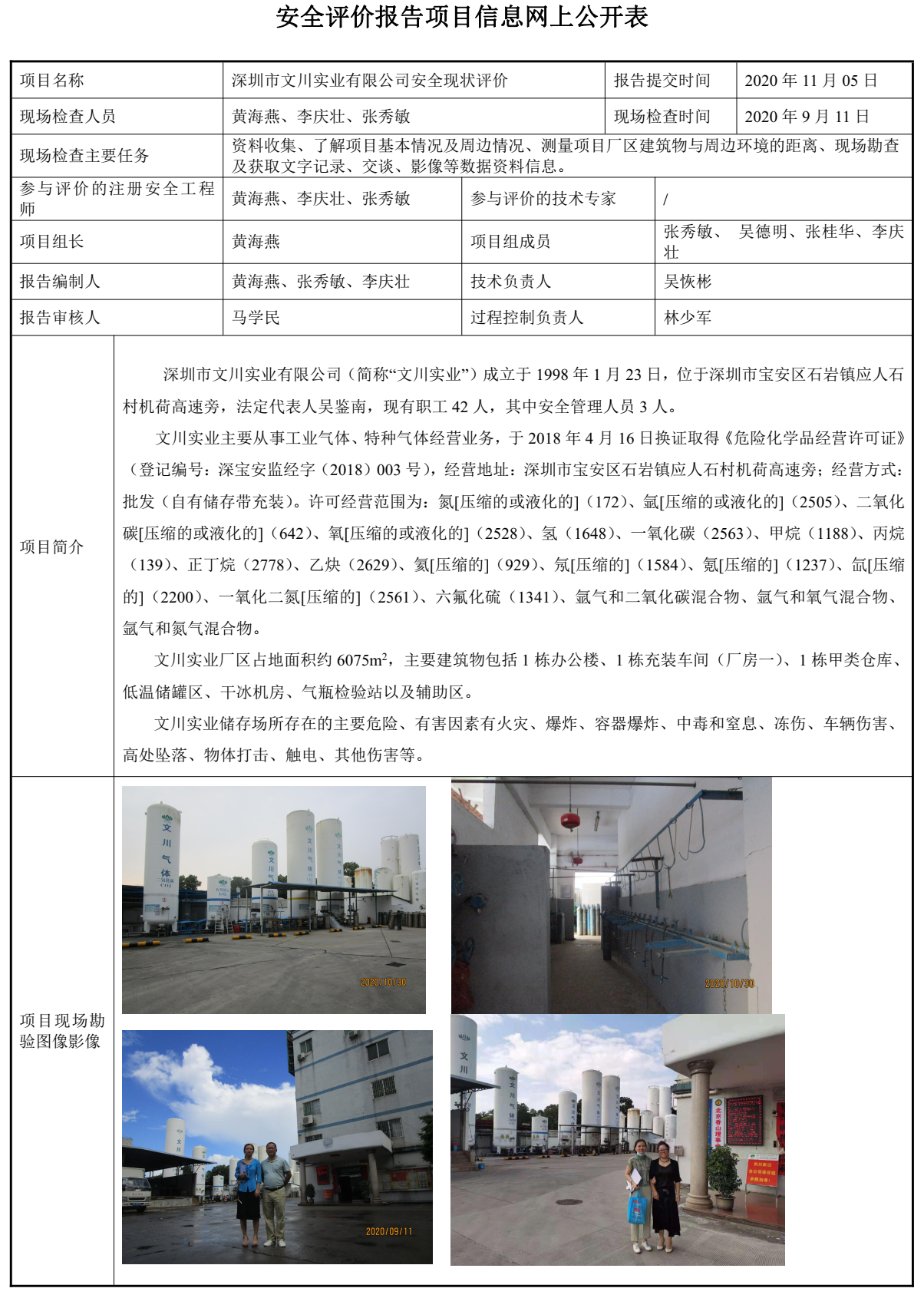 深圳市文川实业有限公司危险化学品经营项目安全现状评价