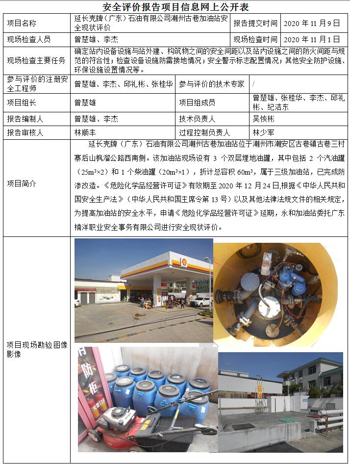 延长壳牌(广东)石油有限公司潮州古巷加油站安全现状评价