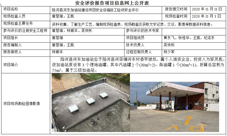 陆河县河东加油站建设项目安全设施竣工验收安全评价