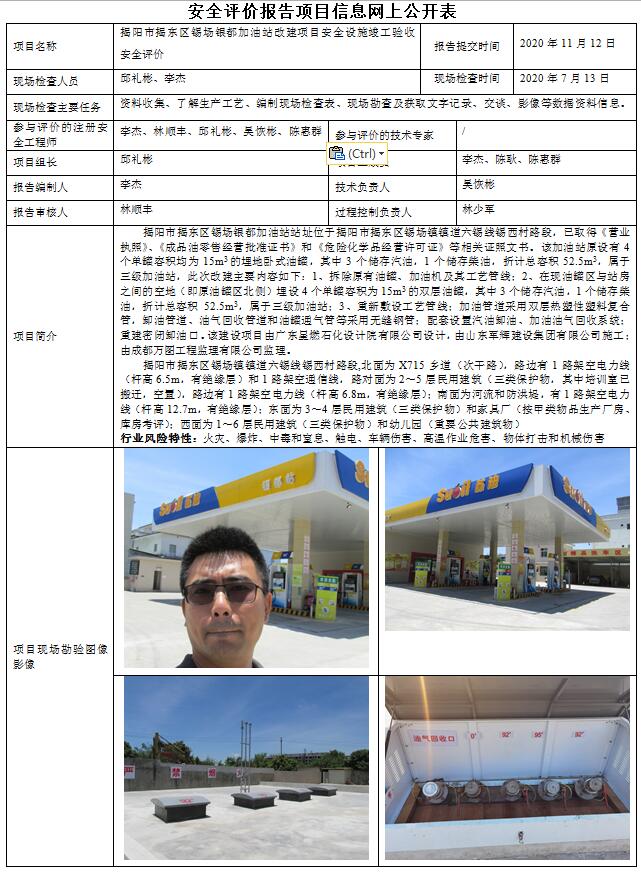 揭阳市揭东区锡场银都加油站改建项目安全设施竣工验收安全评价