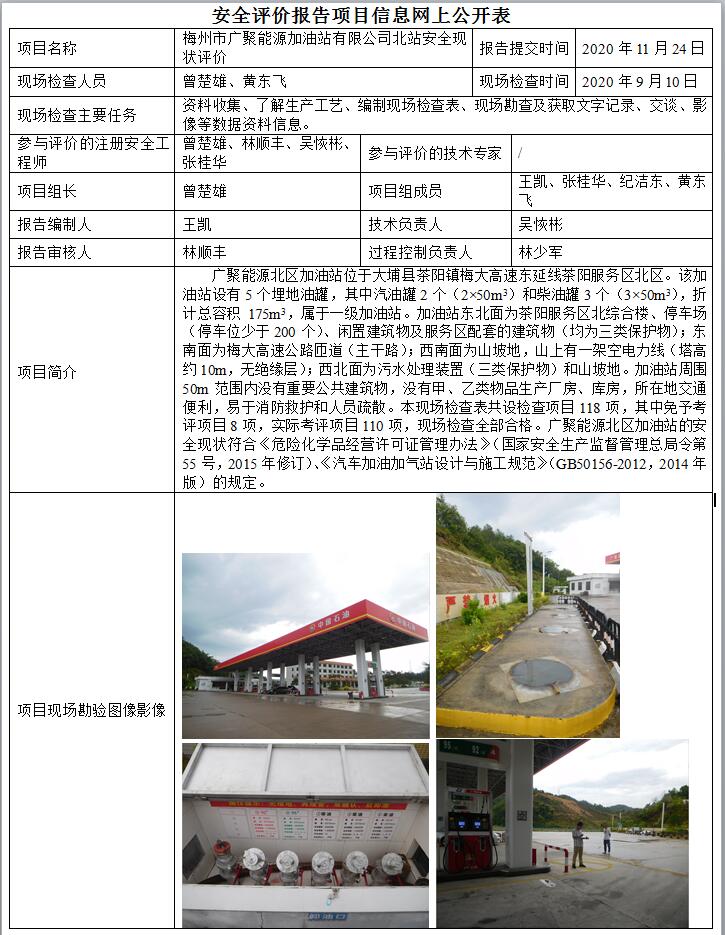 梅州市广聚能源加油站有限公司北站安全现状评价