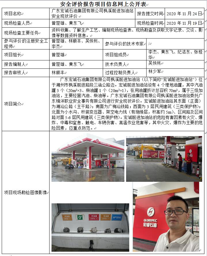 广东宏诚石油集团有限公司枫溪前进加油站安全现状评价
