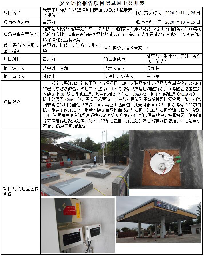 兴宁市坪洋加油站建设项目安全设施竣工验收安全评价