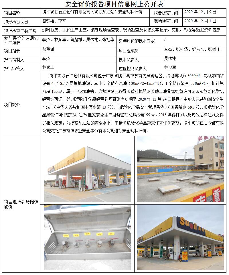 饶平彰联石油仓储有限公司(彰联加油站)安全现状评价
