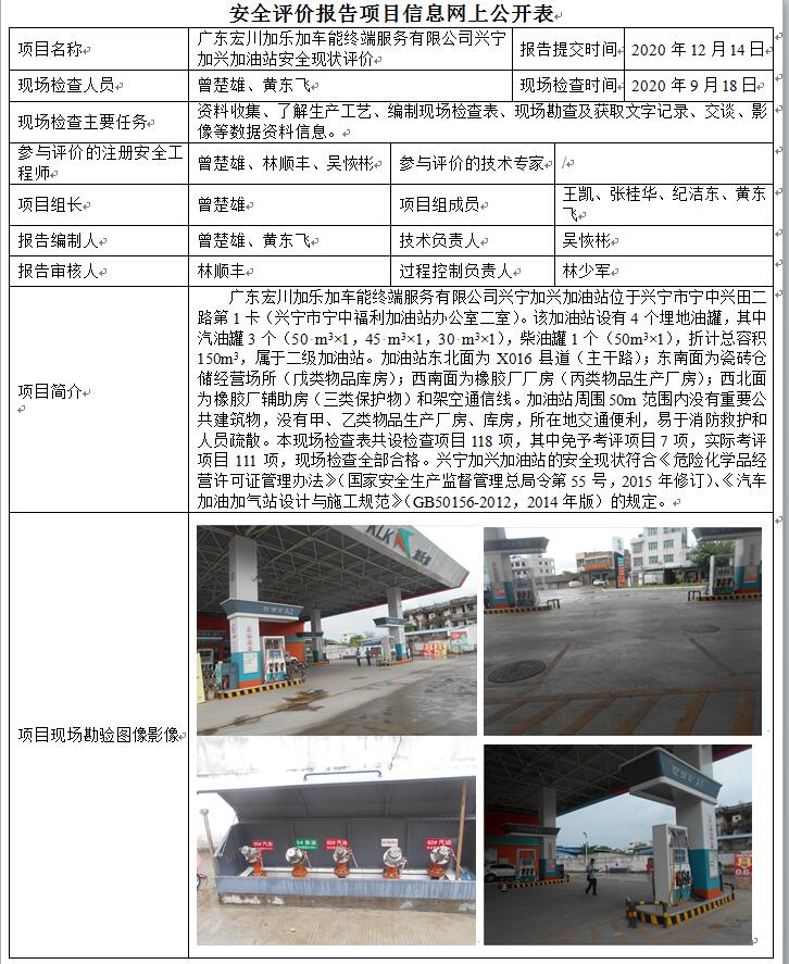 广东宏川加乐加车能终端服务有限公司兴宁加兴加油站安全现状评价