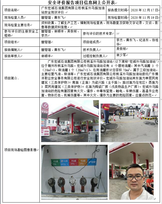 广东宏诚石油集团有限公司枫溪外马路加油站安全现状评价