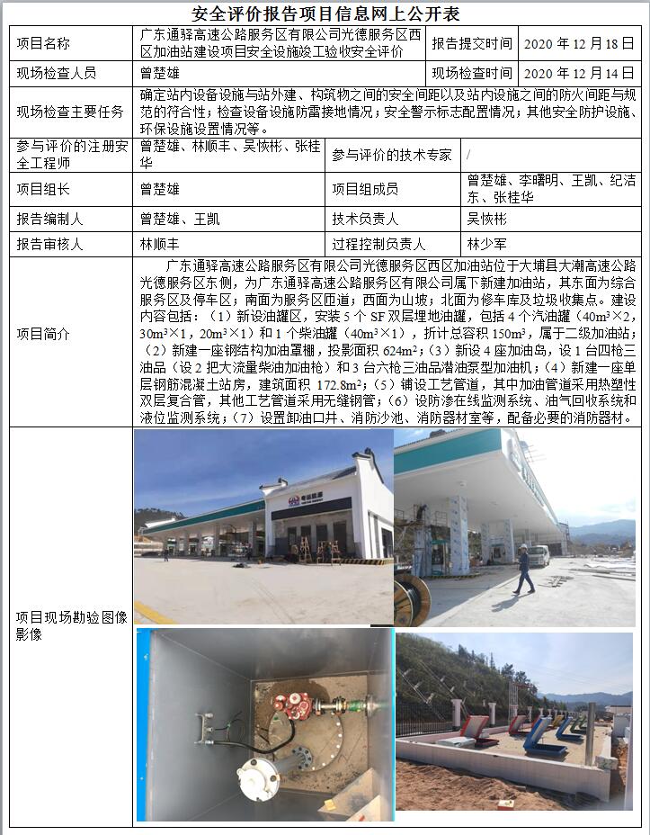 广东通驿高速公路服务区有限公司光德服务区东区加油站建设项目安全设施竣工验收安全评价