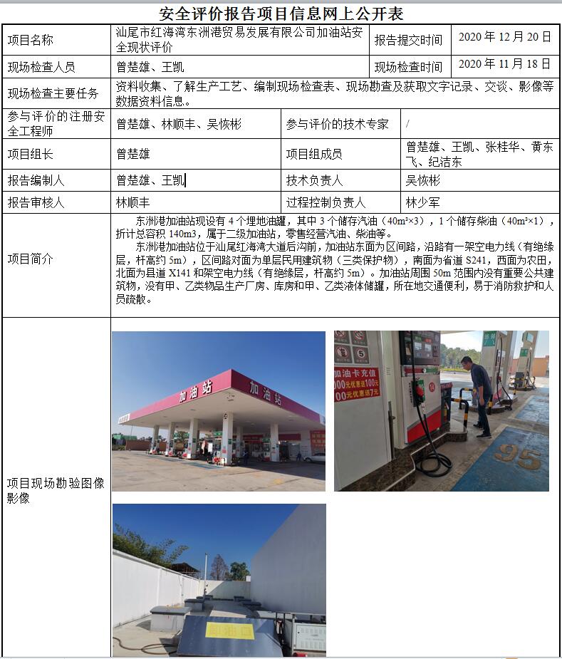 汕尾市红海湾东洲港贸易发展有限公司加油站安全现状评价