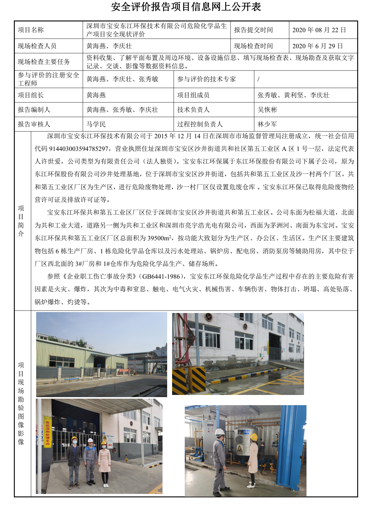 深圳市宝安东江环保技术有限公司危险化学品生产项目安全现状评价