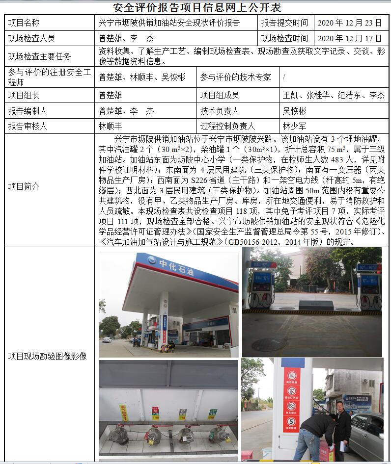 兴宁市正丰石油贸易有限公司(正丰加油站)加油站建设项目安全设施竣工验收安全评价