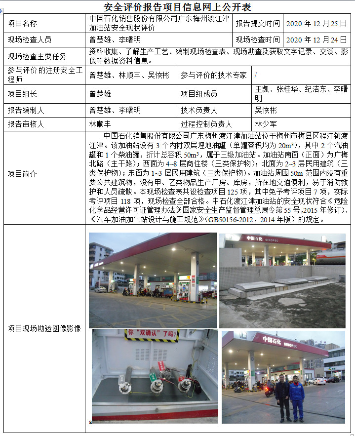 中国石化销售股份有限公司广东梅州渡江津加油站安全现状评价
