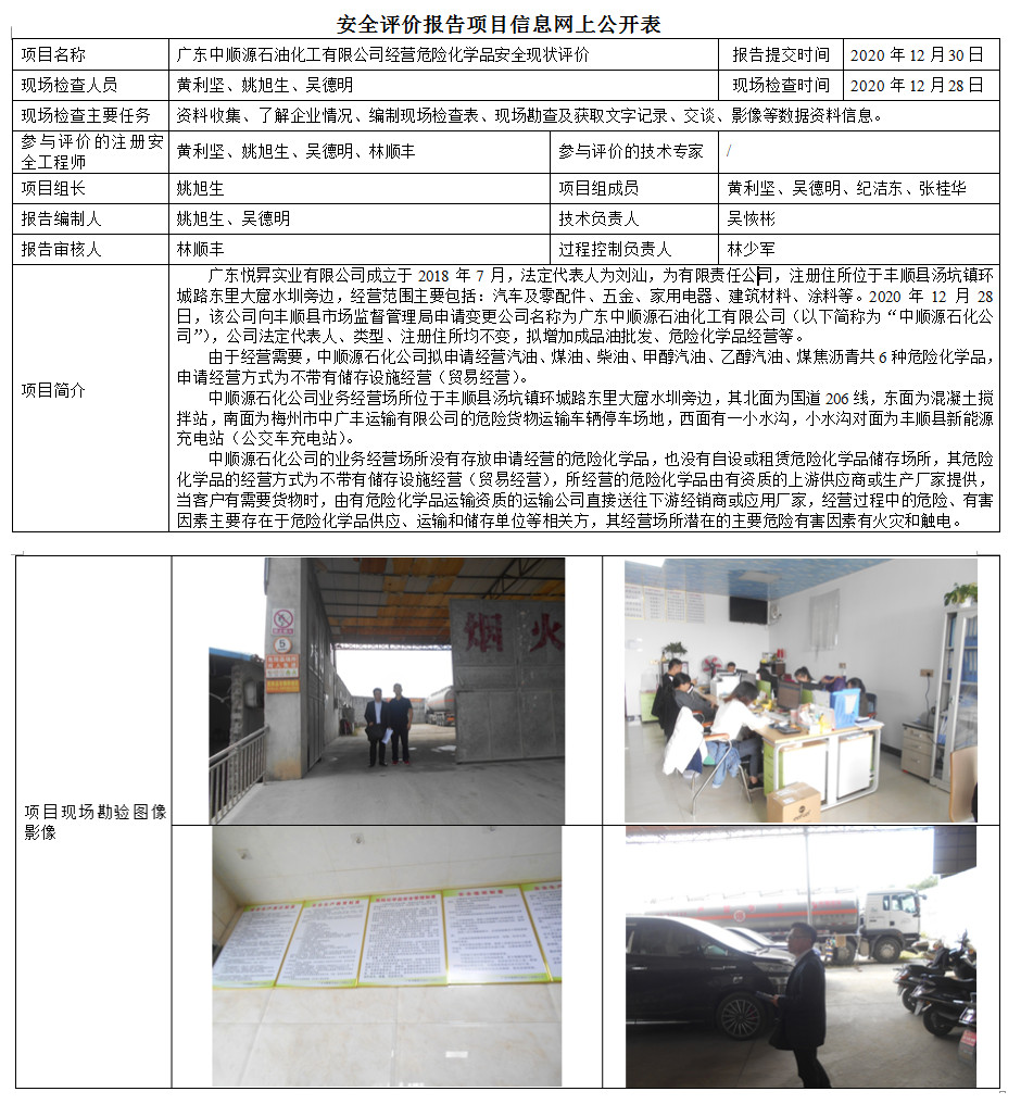 广东中顺源石油化工有限公司经营危险化学品安全现状评价