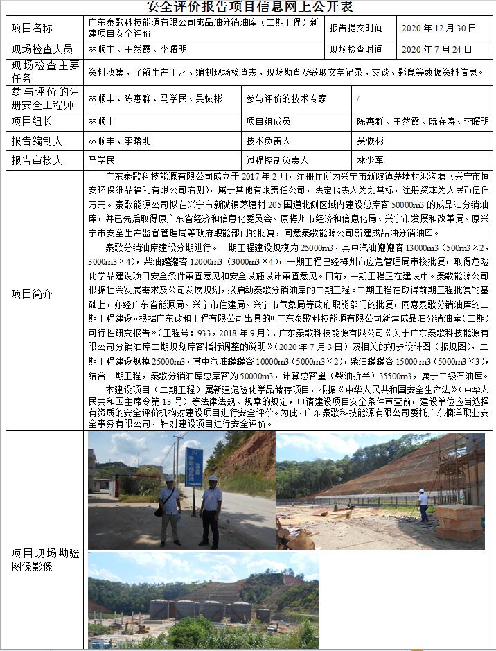 广东泰歌科技能源有限公司成品油分销油库(二期工程)新建项目安全评价