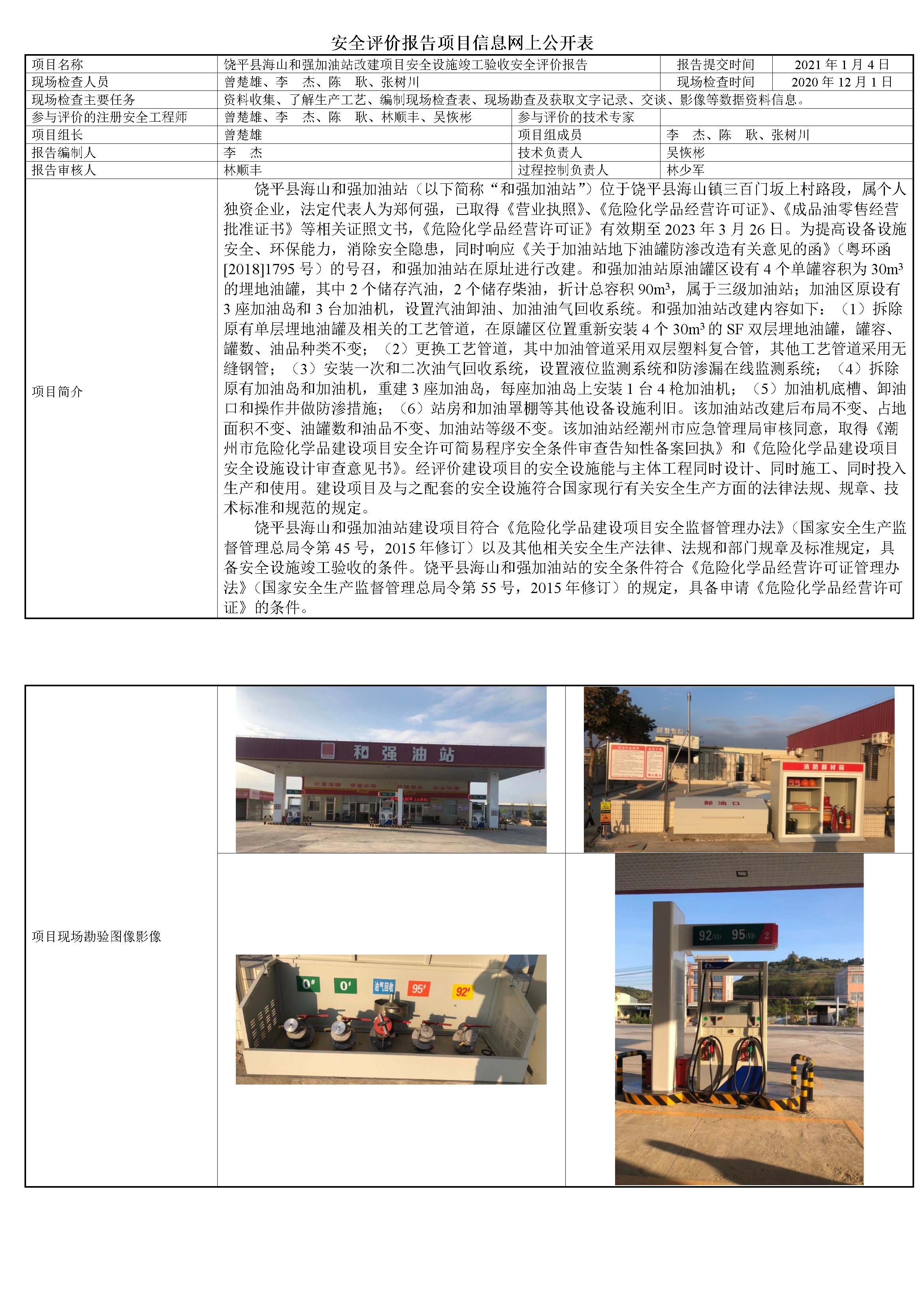 饶平县海山和强加油站改建项目安全设施竣工验收安全评价