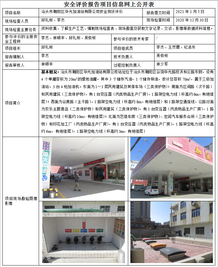 汕头市潮阳区华光加油站有限公司安全现状评价