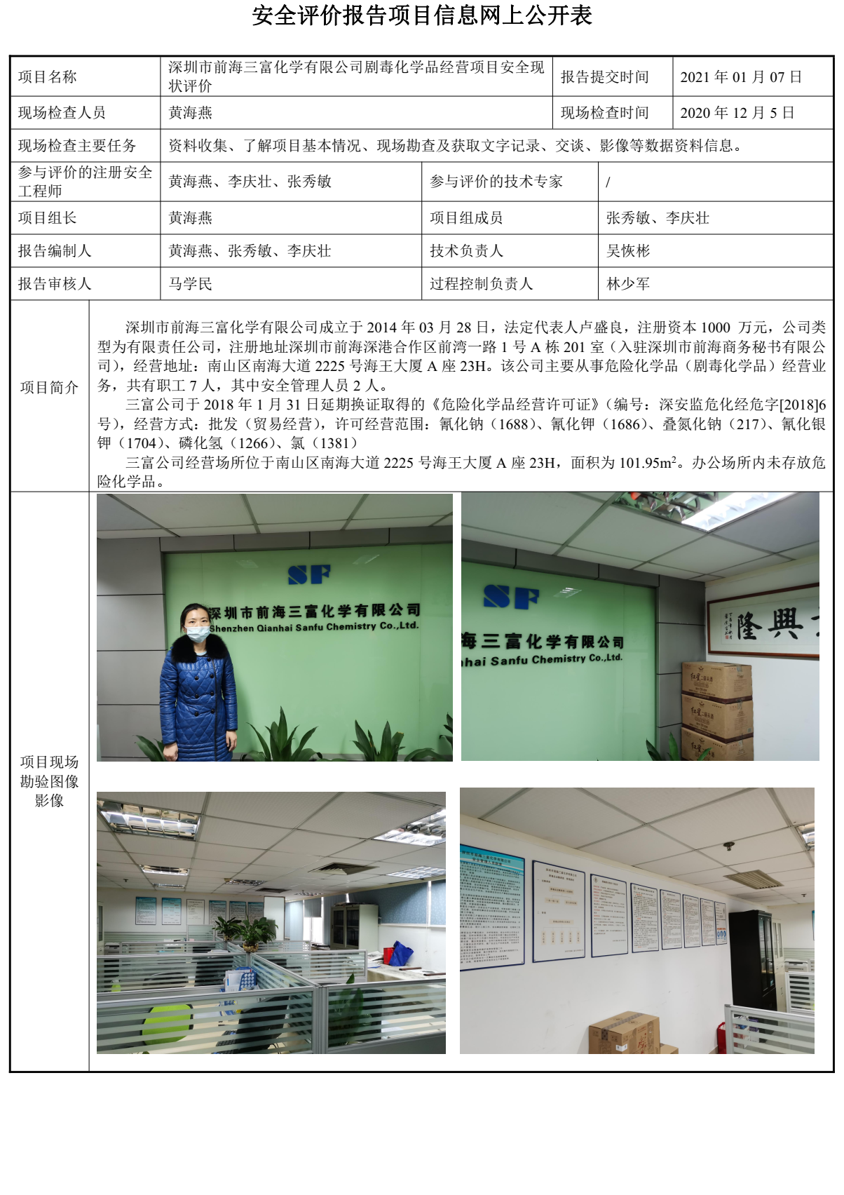 深圳市前海三富化学有限公司剧毒化学品经营项目安全现状评价