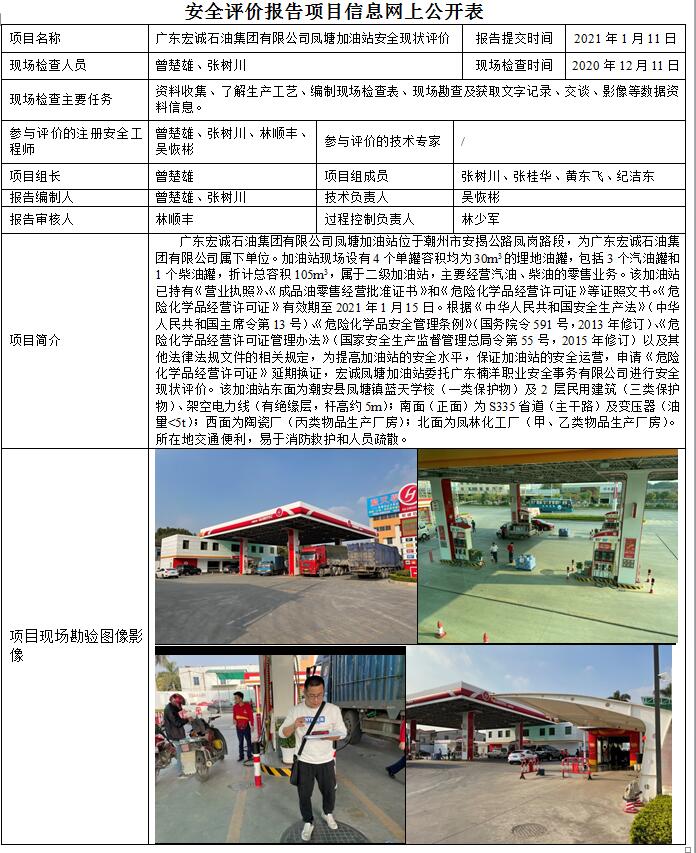 广东宏诚石油集团有限公司凤塘加油站安全现状评价