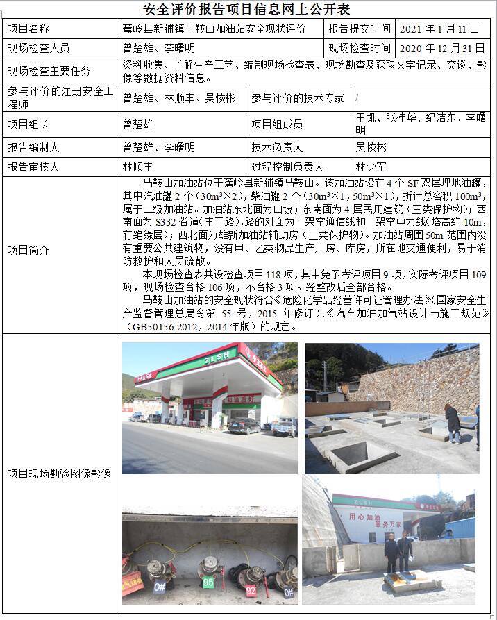 蕉岭县新铺镇马鞍山加油站安全现状评价