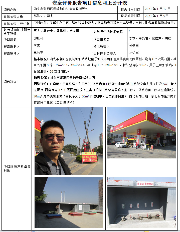 中国石化销售股份有限公司广东河源新运加油站安全现状评价