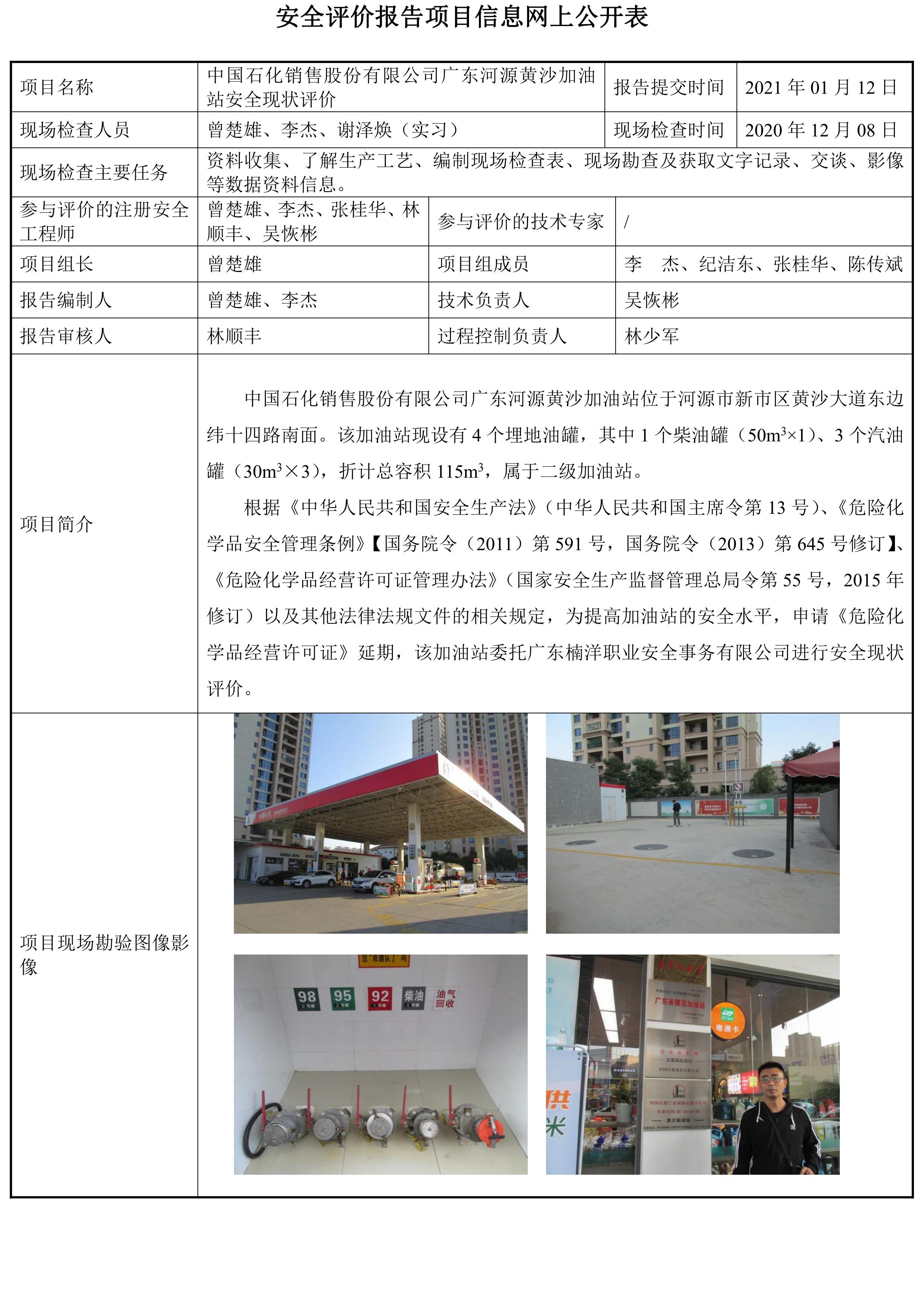 中国石化销售股份有限公司广东河源黄沙加油站安全现状评价